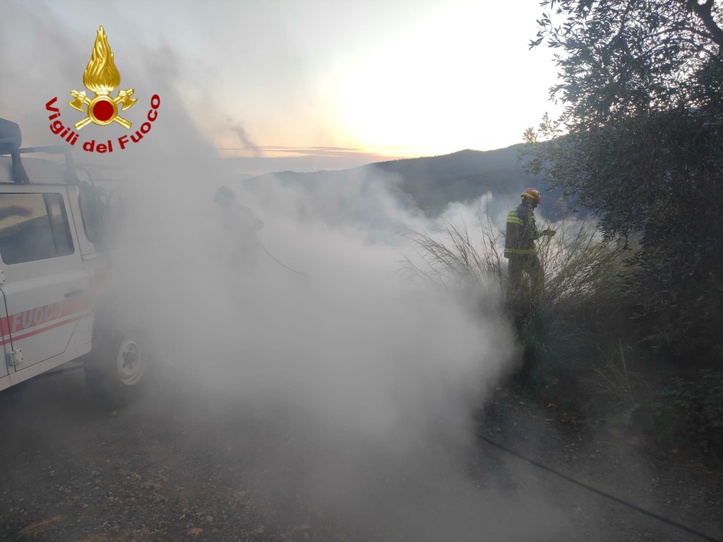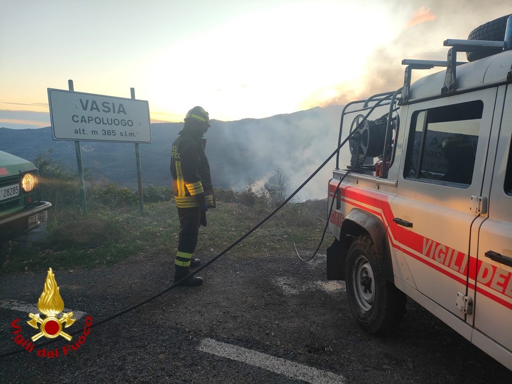 Vento forte e scarsa umidità: incendio provocato da un 'abbruciamento' nella zona di Vasia, intervento dei Vvf (Foto)