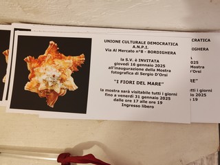 Gli scatti che ritraggono vari tipi di conchiglie si potranno ammirare nella sede dell'Unione Culturale Democratica-Anpi di Bordighera, in via Al Mercato n. 8, fino al 31 gennaio tutti i giorni, festivi compresi, dalle 17 alle 19. L'ingresso è libero.