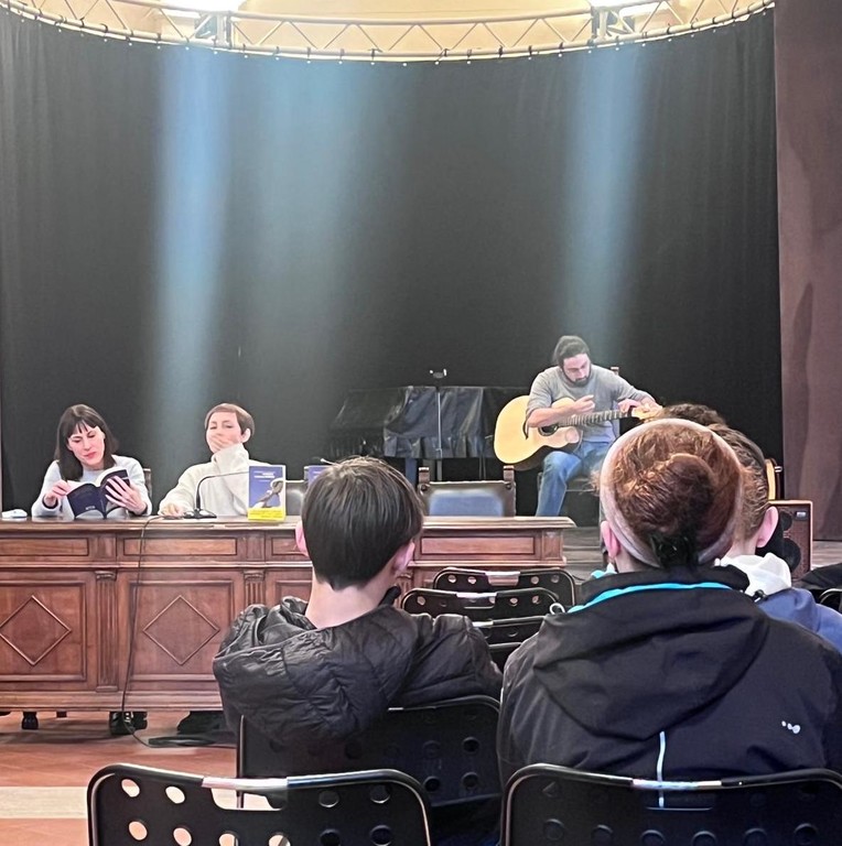 Il pomeriggio è stato animato dal racconto del libro, molto originale e variegato nella sua stesura, immergendo il pubblico in un mondo mitico e fantastico tra Locri Epizefiri e la poetessa Nosside, Pithecusa e la coppa dell’VIII sec. a.C. inneggiante a Afrodite, Saffo, Adone e tutti i vari interessanti spunti che il libro offre. La presentazione è stata inframezzata dal prof. Schiappacasse alla chitarra acustica e infine il pubblico ha rivolto molte interessanti domande alla prof.ssa Sensini.