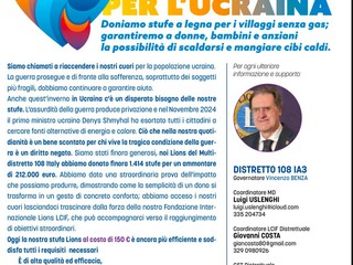 Stufe di alta qualità ed efficacia che contribuiranno a dare conforto a molte famiglie. "Anche quest'inverno in Ucraina c'è un disperato bisogno di stufe" - sottolinea Zagni - "Ciò che nella nostra quotidianità è un bene scontato per chi vive la tragica condizione della guerra, invece, è un diritto negato. Un semplice dono si trasforma così in un gesto concreto di conforto, abbiamo acceso i nostri cuori lasciandoci trascinare dalla forza della nostra fondazione internazionale Lions LCIF".