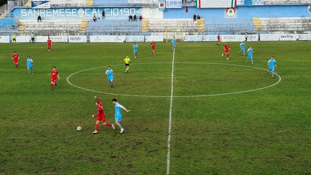 Alla Sanremese non basta il cuore: la sfortuna e la solidità del Città di Varese impongono un nuovo stop ai matuziani, che vengono puniti nel loro momento migliore. Primo quarto d'ora tutto di marca ospite, poi la Sanremese riesce a riprendere campo e chiude bene la prima frazione ma senza occasioni pericolose. Il climax matuziano culmina al 68' con un incrocio dei pali clamoroso di Jebbar, un minuto prima del gol in mischia di Barzotti, che si rivelerà decisivo. Una rete che taglia le gambe ai paroni di casa, incapaci di riproporre l'intensità dei minuti prima del gol. A fine partita entrambe le squadre chiamate sotto la curva, il Varese applaudito, ma anche la Sanremese, con i tifosi che riconoscono ai giocatori l'impegno messo oggi in campo, senza dimenticare cori di contestazione alla società.