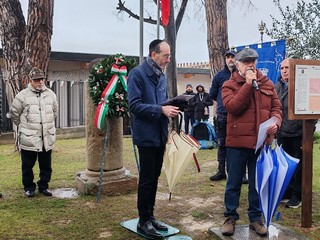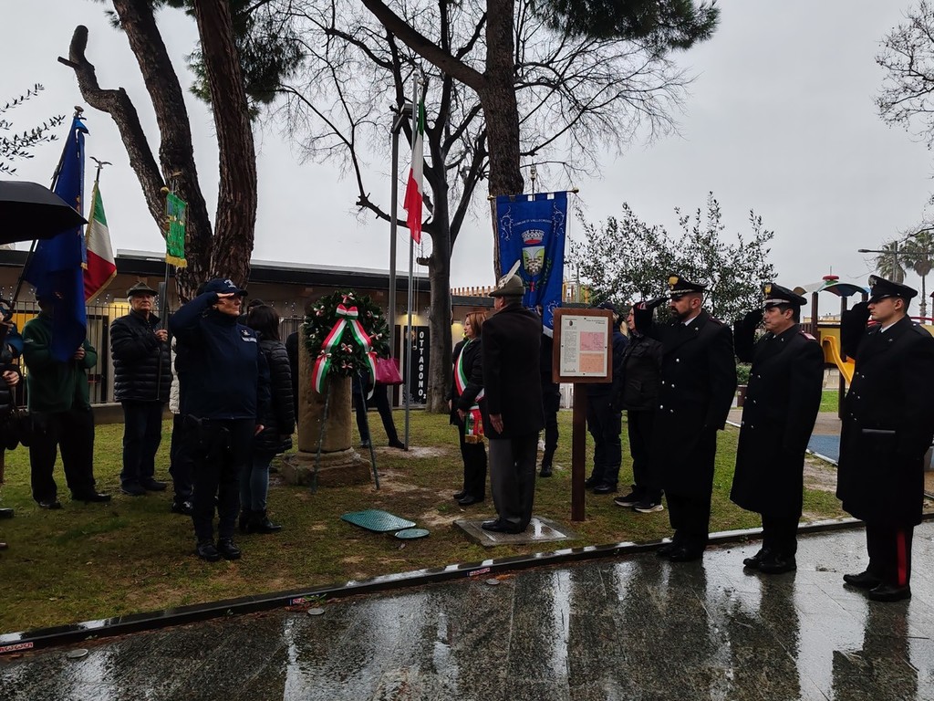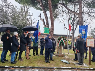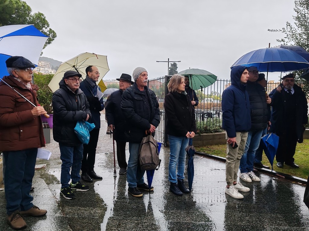 La pioggia non ferma la cerimonia del Giorno della Memoria a Vallecrosia. Autorità civili, locali e regionali, militari, religiose, d'arma e combattentistiche e studenti delle scuole della città si sono riuniti questa mattina presso il Cippo commemorativo, collocato nei giardini di via Roma dove una volta sorgeva un campo di concentramento, per prendere parte alla ricorrenza internazionale per ricordare le vittime dell'Olocausto.