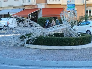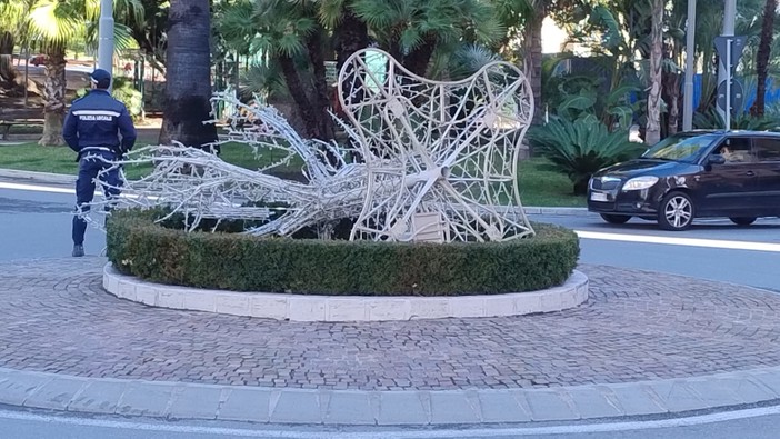 Sanremo: cade decorazione alla rotonda della foce per il forte vento (Foto)