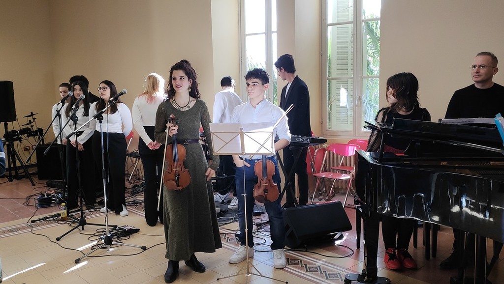 E al termine il maestro, prendendo in prestito una chitarra, ha voluto suonare insieme ai ragazzi stessi, in un'ovazione generale che ha coinvolto tutta la platea accorsa al Cassini.