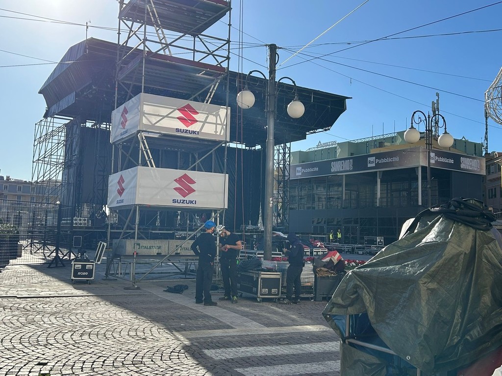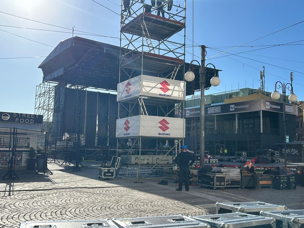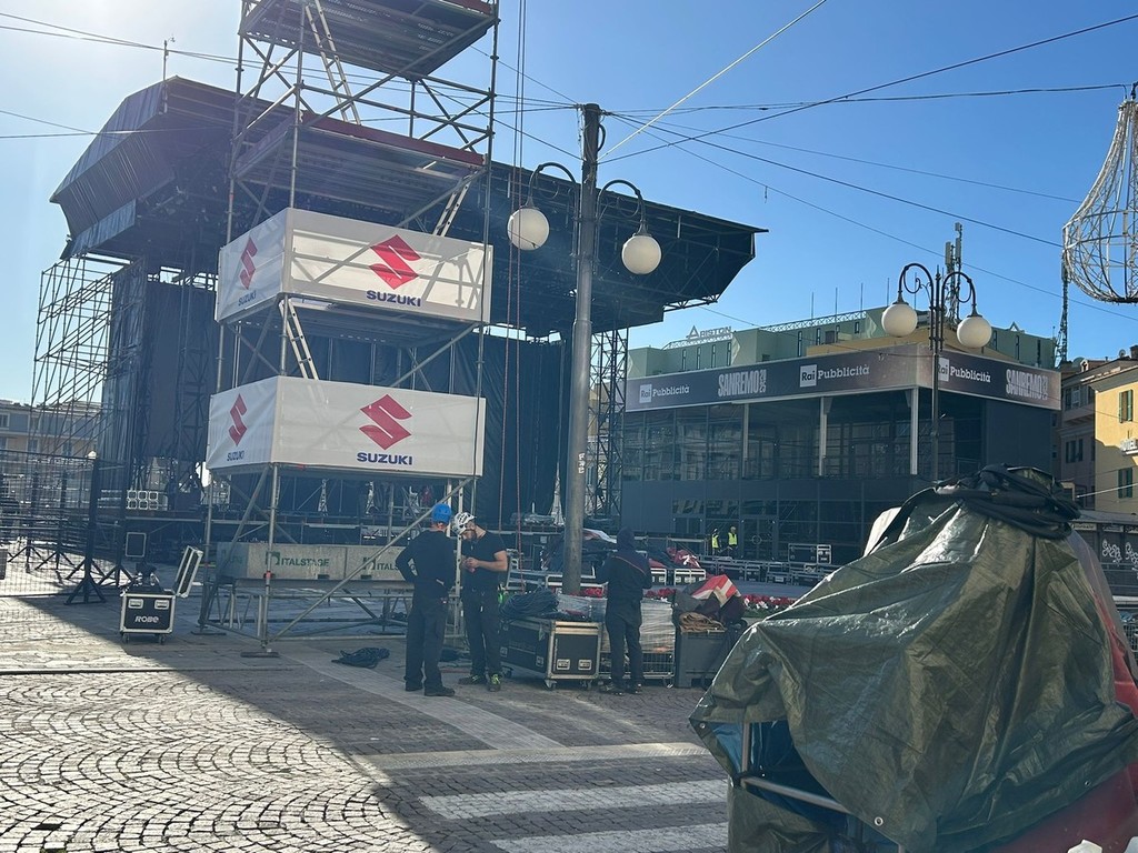 Sanremo si prepara a vivere uno dei suoi momenti più spettacolari: il palco di piazza Colombo, il celebre Suzuki Stage, è ormai pronto. La maestosa struttura, che diventerà il cuore pulsante della città durante il 75° Festival di Sanremo, è stata completata quasi interamente. Manca solo qualche dettaglio, qualche ultimo ritocco, ma il grosso del lavoro è stato fatto, come evidente dalle immagini realizzate questa mattina.