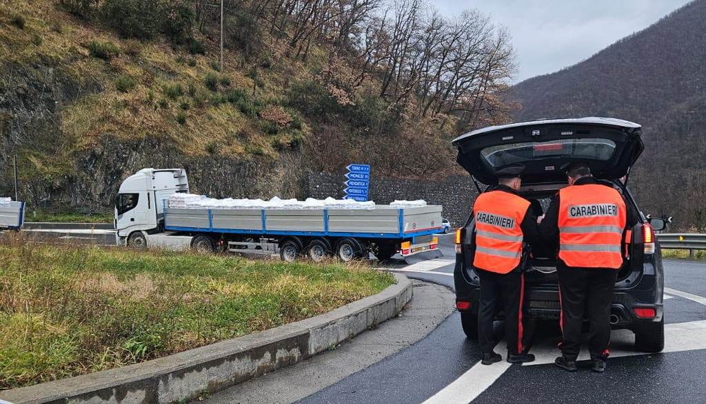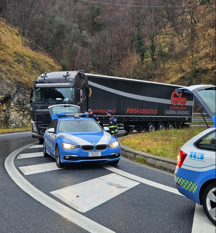 Pornassio: pattuglie di Polizia Stradale e Carabinieri, questa mattina controlli dei Tir sulla Statale 28 (Foto)