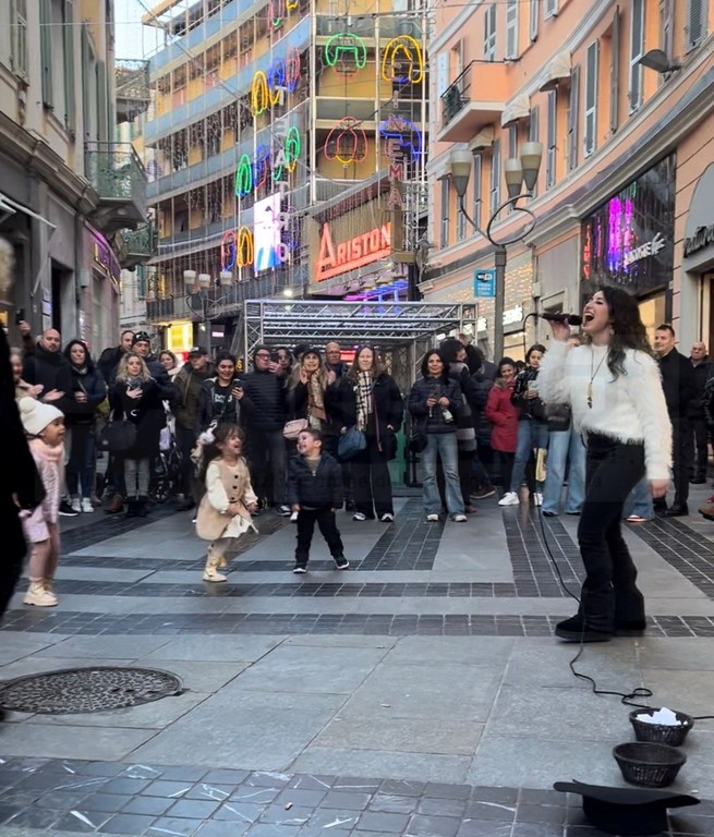 Anche se manca una settimana al Festival, Sanremo è in pieno fermento per la kermesse canora e, come sempre, nella città dei fiori colgono l'occasione in molti per esibirsi nelle vie del centro. Una giovane cantautrice di Sanremo, Federica Kiki, ha regalato un'emozionante performance live in strada di fronte al teatro Ariston.