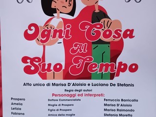 L'atto unico di Marisa D'Aloisio e Luciano De Stefanis incentrato sul "tran tran di una coppia di mezza età, fatto di diverbi, incomprensione, sotterfugi e amori extra coniugali viene sconvolto da situazioni impreviste e imprevedibili cui si aggiunge un intervento che ha del soprannaturale con l'intento di riportare il tutto sulla retta via ma.....ogni cosa al suo tempo!" ha intrattenuto e divertito i presenti.