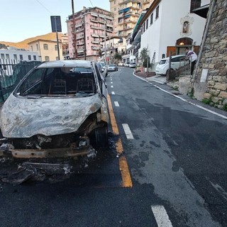 Auto a fuoco nella notte in via Dante Alighieri a Sanremo, l’incendio è scoppiato intorno alle due (Foto)
