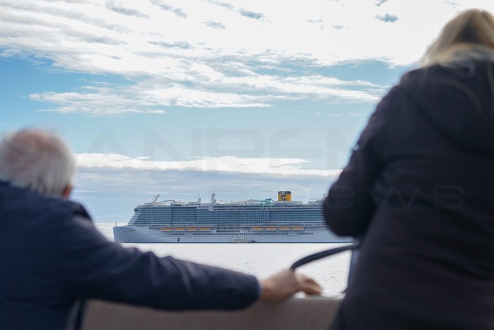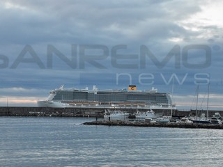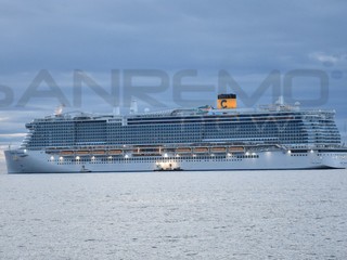 È arrivata a Sanremo la Costa Toscana. L'imponente nave del gruppo Costa Crociere da questa mattina è visibile davanti alla città dove rimarrà per tutta la giornata, prima di riprendere il largo per la crociera prevista nel mediterraneo e poi tornare in rada, nella città dei fiori.