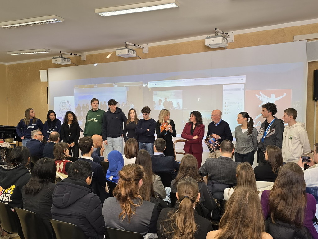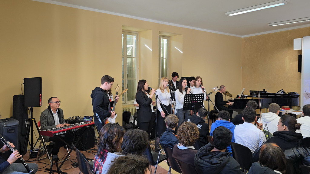 Tra rappresentanti delle istituzioni spiccavano il vicesindaco Fulvio Fellegara e il consigliere regionale Chiara Cerri. Accompagnati da intermezzi musicali a cura della Cassini’s Band e del Liceo Musicale oggi ci hanno tenuto compagnia il giornalista musicale Andrea Spinelli e il patrono dell’Ariston Walter Vacchino. Il dott. Spinelli che nel suo curriculum vanta collaborazioni con numerose testate giornalistiche nazionali e con riviste specializzate nel settore musicale, ha allietato la mattina raccontando alcuni aneddoti relativi alla sua lunga e brillante carriera. Nato a Perugia città che gli ha trasmesso la grande passione per il Jazz e il rock , ha ammesso di essersi avvicinato al mondo del giornalismo per “colpa” dei Pink Floyd e di David Bowie, artisti che per altro è riuscito a intervistare. Ha rivelato al pubblico in sala che le sue interviste preferite sono quelle in cui il cantante non si limita a raccontare solo del suo lavoro e dei progetti, ma si apre e rivela i propri sentimenti e ha anche il coraggio di esporre le proprie fragilità. Di grande interesse per il pubblico e per noi giovani studenti che ci cimentiamo in attività di “giornalismo” è stata la sua riflessione sul valore del giornalismo fondato non su come si racconta ma su ciò che si racconta. La verità del fatto e quindi la sua attendibilità e la limpidezza delle fonti sono elementi basilari che il giornalismo del ventunesimo secolo non può ignorare per non perdere di vista la funzione etica che le è propria. Le notizie si affollano e la divulgazione social è sempre più pervasiva è il rischio è che si presti poca attenzione alle fonti e alla loro veridicità. A dimostrazione di ciò un dato: l’aumento del numero dei giornalisti presenti in sala stampa a Sanremo che è più che raddoppiato. Ha concluso il suo intervento constatando, con una nota di malinconia, come il senso di squadra sia progressivamente perso e soprattutto come talora anche la libertà di espressione debba superare ostacoli, perché la libertà della stampa è la libertà dei suoi cittadini.