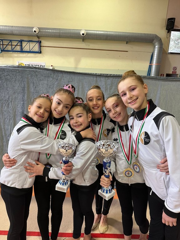Le atlete del Cerchio D’Oro di Imperia iniziano il campionato a squadre con un ottimo risultato. Primo posto per la squadra gold Allieve 1 capitanata da Ginevra Longo con Emma Lucifredi e Karol Lo Sasso, che si porta a casa il primo posto nella prima prova. La prova collettiva delle ragazze si è fatta apprezzare dai giudici per la particolare sincronia delle atlete, precise nei movimenti e nelle difficoltà. Con questa squadra il Cerchio d’Oro si era già classificato ai campionati nazionali a squadre lo scorso campionato. Terzo posto per la squadra gold Allieve 3 capitanata Giorgia Stuani con Alessia Grillo e Isabella Rossi, che si sono esibite per la prima volta insieme con un esercizio collettivo e nonostante qualche imprecisione riescono a chiudere con un buon punteggio e con un risultato importante.