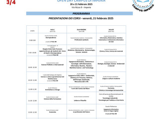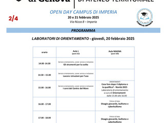 Ci siamo! Anche quest’anno il Campus Universitario di Imperia, sta preparando due giornate dedicate all’orientamento universitario che si terranno il 20 e 21 febbraio 2025.