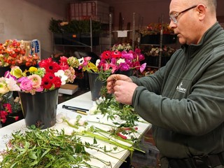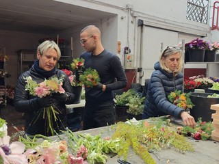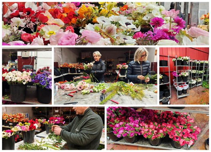 In uno dei magazzini del Mercato di Valle Armea abbiamo trovato chi sta preparando i mazzi che, da questa sera saranno consegnati durante le serate Festival ai cantanti ed agli ospiti della kermesse canora. Siamo stati accolti da uno dei componenti del Cda di Amaie Energia, Mauro Albanese, dal direttore del mercato, Franco Barbagelata, insieme alla responsabile del ‘Bouquet Sanremo’ Jessica Tua, il vincitore del concorso di gennaio Pietro Laezza e l’intero team che produce i bouquet.