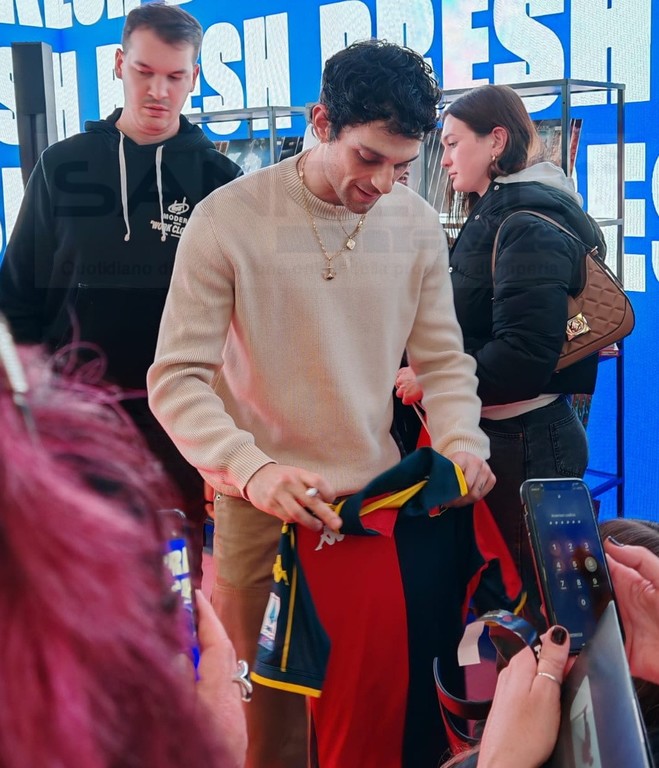 Bresh, all'anagrafe Andrea Emanuele Brasi, nato a Lavagna e cresciuto a Bogliasco, ha elargito sorrisi per tutti sottoponendosi con sincera disponibilità anche agli immancabili selfie. E ha autografato con cura le maglie del Genoa, squadra del cuore che ha adottato una sua canzone (Guasto d'amore), che gli hanno porto diversi tifosi rossoblù approfittando dell'occasione. Insomma, mezz'ora di full immersion con i fan in attesa di tornare nell'arena del Sanremo 2025, tra i 15 protagonisti della seconda serata, dopo il “tutti in campo” dell'apertura.