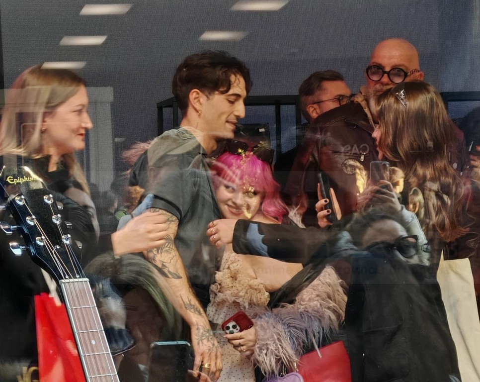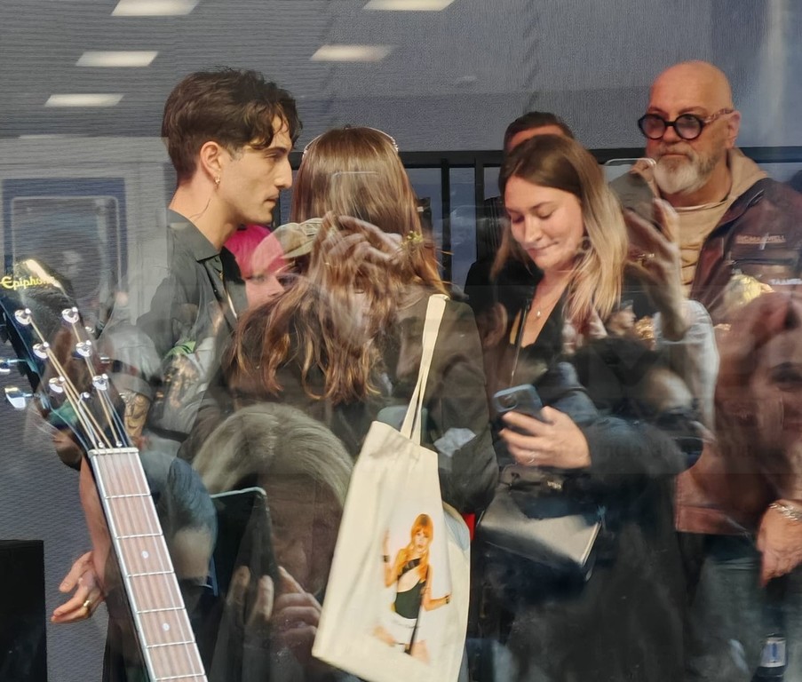 Il leader dei Maneskin, che ha intrapreso anche la carriera di solista ed è stato ieri ospite del Festival di Sanremo, ha letteralmente catalizzato l’attenzione dei suoi fan che si sono assiepati davanti alle vetrine del Sony Music Store, allestito di fronte al Palafiori.