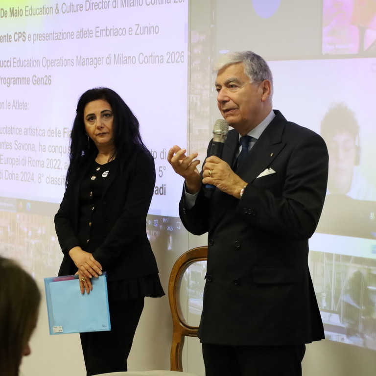 L’incontro è proseguito con l’intervento di Arianna Pucci, Education Operations Manager di Milano Cortina 2026 che ha presentato L’Education Programma Gen 26 e ha rimarcato il valore dei Giochi Paralimpici, che sono le competizioni più ambite dagli atleti, due eventi che si muovono in parallelo e che rispecchiano i valori trasmessi dallo sport: eccellenza, rispetto e amicizia.