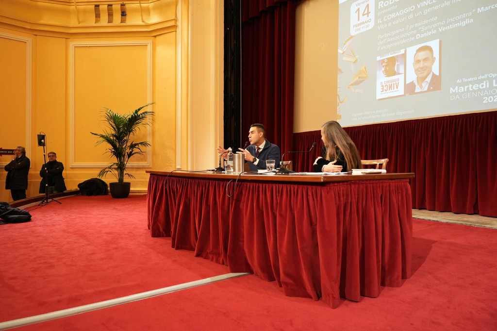 Dopo aver fatto tappa all’Ariston nella serata di ieri, il Generale Roberto Vannacci ha presentato questa mattina il suo nuovo libro "Il coraggio vince" al Teatro dell’Opera del Casinò di Sanremo, nell’ambito dei Martedì Letterari. L’evento, organizzato dall’associazione culturale Sanremo Incontra, presieduta da Marco Lupi e con Daniele Ventimiglia come vicepresidente, ha registrato il tutto esaurito, confermando l’alta attesa per l’arrivo dell’europarlamentare.