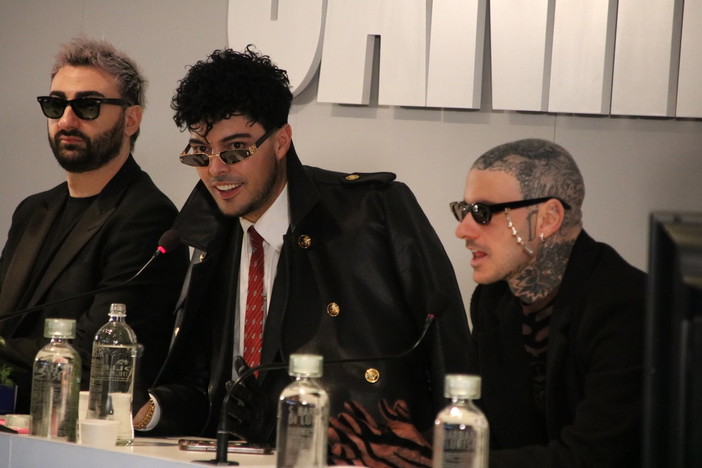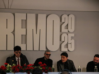 A interrompere la conferenza stampa è stato proprio l’ingresso a sorpresa di Sal Da Vinci, accolto sulle note del suo brano, eseguito nuovamente al sax. Un momento di grande complicità che anticipa lo spettacolo che porteranno sul palco dell’Ariston.