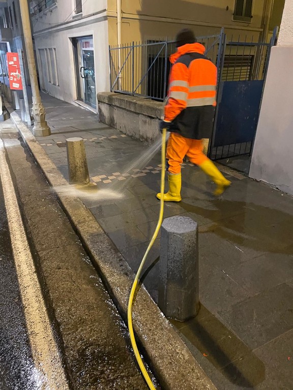 Nel periodo notturno, tra la mezzanotte e le sei del mattino, sono stati posti in azione 12 operatori per spazzamenti meccanizzati e lavaggi manuali con tre idropulitrici a pressione, due spazzatrici con operatore dotato di soffiatore e un’autobotte. Anche durante la giornata sono stati organizzati diversi turni, dal mattino alla sera, con un’altra integrazione degli operatori sul territorio per attività di spazzamento e svuotamento dei gettacarte nelle aree centrali della città.