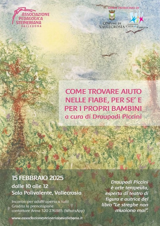 "Si è parlato di cosa connota le fiabe, le loro disparate interpretazioni, di cosa parlano, è stato fatto un focus antroposofico, si è riflettuto sul perché è importante raccontarle ai bambini e come possono aiutare anche gli adulti" - sottolineano gli organizzatori - "L’incontro con l’autrice ha permesso di scoprire l’inedito percorso di ricerca che, a partire da uno studio articolato e approfondito delle antiche fiabe popolari, mostra come queste possano essere nutrimento per l’anima e uno strumento autoconoscitivo potente: consentendo di vedere con maggiore chiarezza dove ci troviamo in questo momento del nostro cammino di vita, cosa ci ostacola e come possiamo trasformare ciò che non ci corrisponde più. Attingendo alla propria esperienza professionale sul campo, Draupadi Piccini condivide i passaggi di un originale lavoro di arte e cura di sé, dove la fiaba agisce da interlocutrice fondamentale in un dialogo di ampio respiro tra arteterapia, teatro di figura e lavoro sulla biografia personale. Senza dimenticare di cercare di capire chi erano le streghe, di cosa parlavano e che cosa rappresentano ma, soprattutto, in che modo ci aiutano a sviluppare consapevolezza, capacità di trasformazione e comprensione di noi stessi e degli altri".