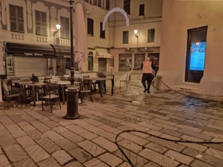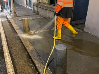 Nel periodo notturno, tra la mezzanotte e le sei del mattino, sono stati posti in azione 12 operatori per spazzamenti meccanizzati e lavaggi manuali con tre idropulitrici a pressione, due spazzatrici con operatore dotato di soffiatore e un’autobotte. Anche durante la giornata sono stati organizzati diversi turni, dal mattino alla sera, con un’altra integrazione degli operatori sul territorio per attività di spazzamento e svuotamento dei gettacarte nelle aree centrali della città.