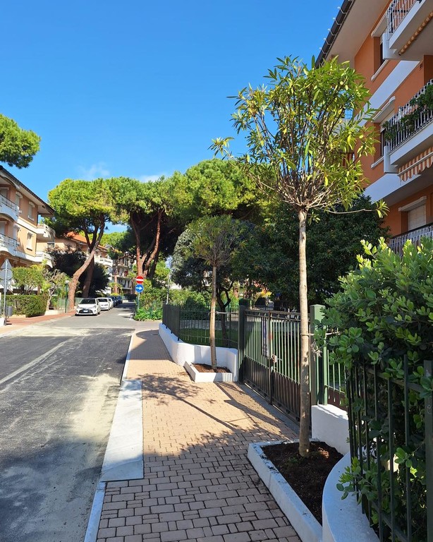 Via Bigarella a Bordighera cambia volto. Dopo l'abbattimento per motivi di pubblica sicurezza di cinque alberi di proprietà comunale e i lavori di rifacimento dei marciapiedi e dell'asfalto della strada sono state piantate nuove specie arboree.