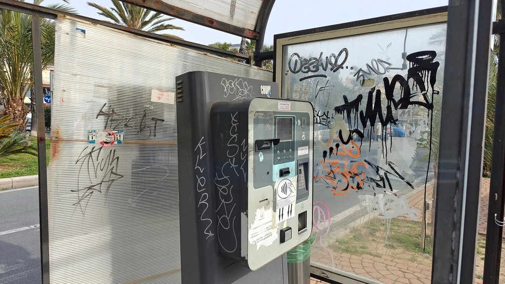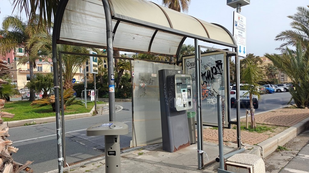 Sanremo: parcometro vandalizzato sul lungomare Calvino, i soliti maleducati ma serve un intervento di restauro (Foto)