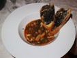 Lo Zimino di seppia, ha unito la freschezza del mare alla rusticità del pane tradizionale ligure, grazie ad un crostone di pane reso scuro dal nero di seppia, che ricordava il profumo del mare creando un equilibrio perfetto con le verdure e i ceci.