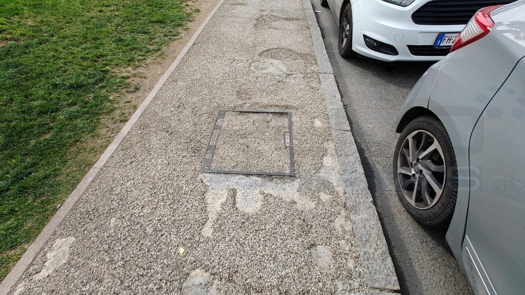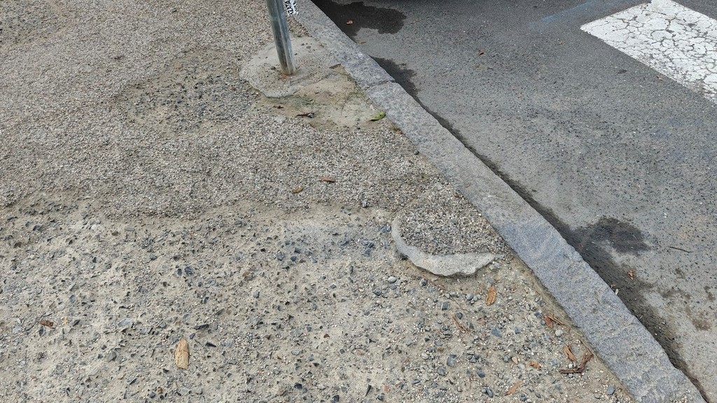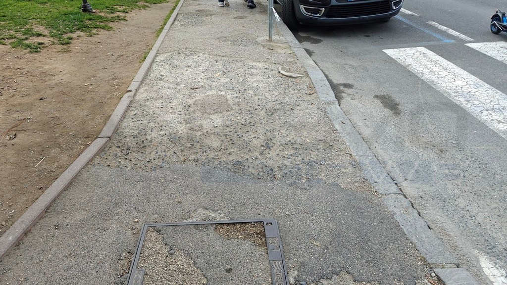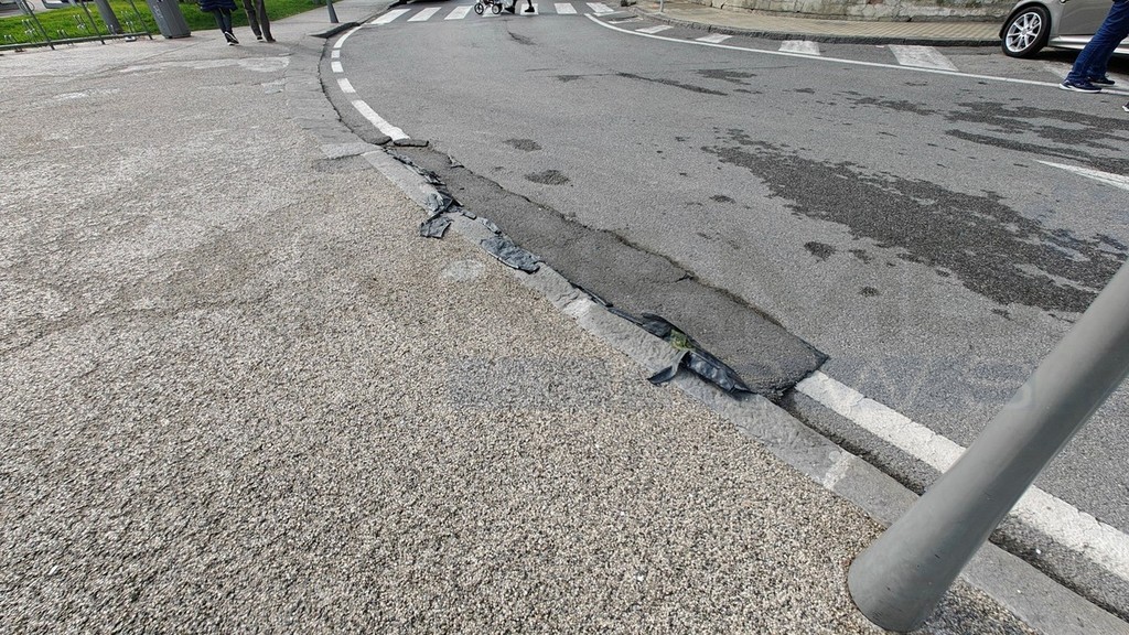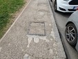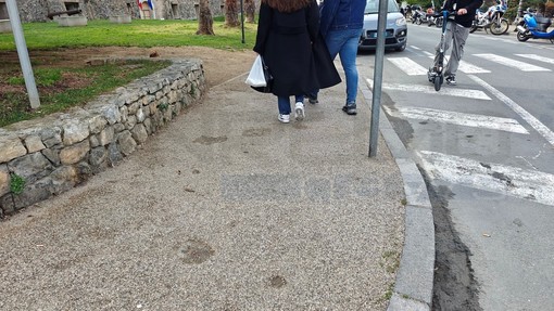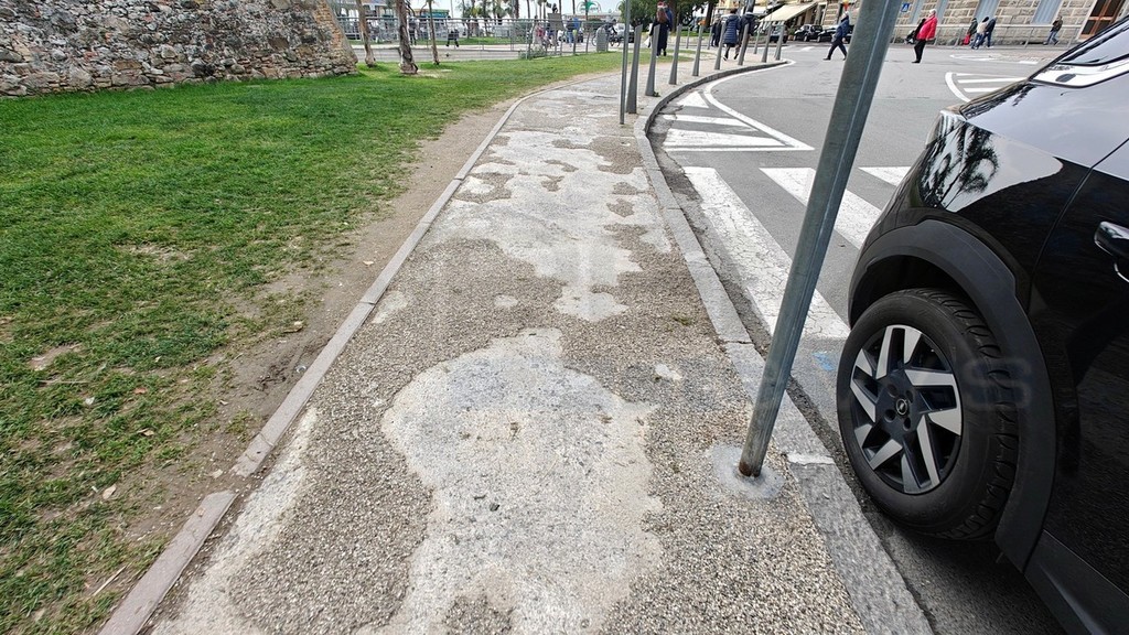 Sanremo: marciapiede devastato di fronte a Santa Tecla, brutta immagine della città e rischi di cadute (Foto e Video)