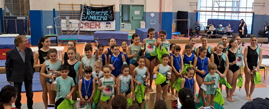 Si è svolta sabato scorso la prima prova regionale di ginnastica artistica del Campionato CSEN nella quale i vari atleti hanno gareggiato in tutti i programmi CSEN: Rainbow Gym, Cup, Specialità, Eccellenza 1, 2, 3 e Maschile. La competizione è stata organizzata dalla associazione 'Insieme Sanremo', responsabile CSEN Liguria: il team di istruttori presenti in campo gara, Marzia Riccardi, Matilde Filippi, Angelica Stella, ha organizzato la competizione curandone ogni dettaglio, mentre Sonia Di Marcoberardino ha diretto con grande competenza la giuria.