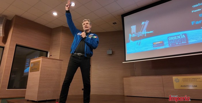 Paolo Nespoli, l' astronauta italiano che ha trascorso 313 giorni nello spazio, ha incontrato stamattina gli studenti delle scuole superiori di Imperia e provincia, nell'ambito di 'Orientamenti', la rassegna organizzata dall’assessorato alla Programmazione del Fondo sociale europeo della Regione Liguria. L'incontro all'Auditorium della Camera di Commercio, ha suscitato grande entusiasmo tra i ragazzi, con una risposta straordinaria che ha visto tutti gli eventi sold-out.