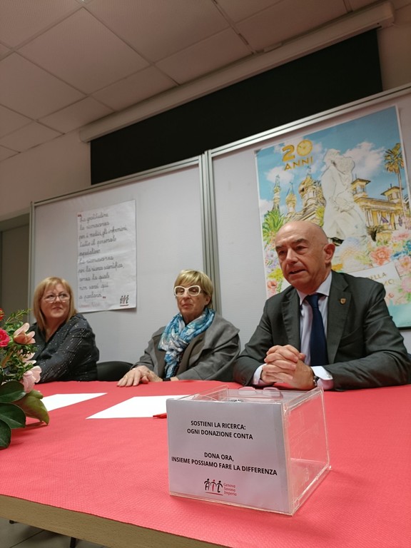 Presenti il Sindaco di Sanremo Alessandro Mager, per la sezione di Ail Genova-Savona-Imperia Odv la consigliera e volontaria Silvana Goslino Ravano e i referenti dei volontari di Sanremo Piera Brodolungo e Elena Schiavi.