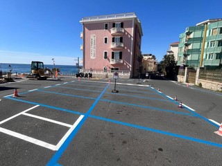 Continua il rifacimento della segnaletica orizzontale a Bordighera. Sono stati ridefiniti i posti auto, i posti per le moto, i passaggi pedonali e le strisce per l'attraversamento pedonale in diverse zone della città.