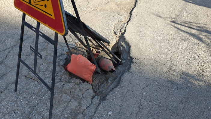 Sanremo: profonda buca e smottamento dell'asfalto da anni in Valle Armea, dal Comune "A breve la consegna del cantiere"
