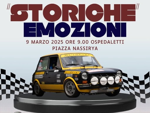 A partire dalle ore 9 di domenica 9 marzo, si svolgerà ad Ospedaletti un raduno di auto storiche intitolato “Storiche Emozioni”. L'appuntamento è fissato in Piazza Nassirya, davanti alla vecchia stazione ferroviaria, da dove partirà un giro delle vetture e degli equipaggi iscritti, da Ospedaletti verso le strade di Sanremo e ritorno alla base dove le vetture resteranno in esposizione per tutta la giornata.