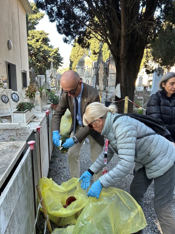 Un altro aspetto cruciale riguarda la gestione della vegetazione: alcune piante, crescendo nel tempo, diventano parte integrante delle tombe, rendendo necessaria un’azione di rimozione mirata. “L’azione di oggi prevede l’eliminazione dei vasi che vanno tolti, operando volta per volta”, ha aggiunto Dedali, precisando che questi interventi dovranno essere supervisionati da restauratori specializzati per evitare danni ai monumenti.