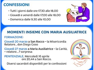 "Sono, inoltre, previsti momenti di formazione insieme a Maria Ausiliatrice" - afferma don Rito - "Giovedì 20 marzo a San Rocco si parlerà della Misericordia con il relatore Diego Goso; giovedì 27 marzo a Maria Ausiliatrice verrà affrontato il tema della Carità con un relatore a sorpresa mentre mercoledì 16 aprile alle 20.44 a San Rocco si terrà un momento penitenziale. Per l'occasione diversi sacerdoti saranno disponibili per le confessioni. Lunedì 2 giugno, invece, è previsto il Pellegrinaggio giubilare al monte Saccarello. La partenza sarà alle 8 da Verdeggia. Le parrocchie di San Rocco e Maria Ausiliatrice parteciperanno insieme".