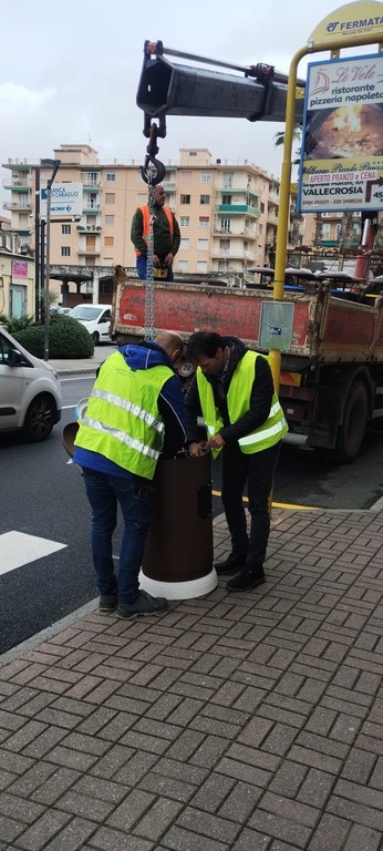A Vallecrosia spuntano nuovi cestini di arredo urbano per la raccolta differenziata. E' iniziato ieri il posizionamento dei 'bidoncini' di tipo trittico per la carta, la plastica e l'indifferenziata.