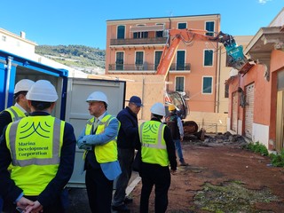 All'inizio dell'abbattimento della struttura erano presenti anche il sindaco Flavio Di Muro, l'assessore Adriano Catalano, il presidente del Consiglio comunale Roberto Nazzari, il consigliere comunale Enzo Di Marco, i tecnici del Comune, della ditta incaricata alla demolizione e Marina Development Corporation. "Una demolizione attesa dai residenti del Borgo e da tutta la cittadinanza di Ventimiglia" - afferma il sindaco Flavio Di Muro - "Abbiamo concesso ai privati di fare questo tipo di intervento. Nascerà un polo turistico in materia enogastronomica. Un'idea commerciale volta al turismo per dare un'immagine migliore alla città".