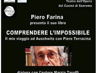 Giovedì 20 marzo, ore 16.30, nel teatro dell’Opera del Casino di Sanremo in collaborazione col Club per l’Unesco di Sanremo il regista Piero Farina presenta in anteprima nazionale il suo primo impegno letterario edito da Antea edizioni col titolo: ”Comprendere l’impossibile - Il mio viaggio ad Auschwitz con Piero Terracina”.