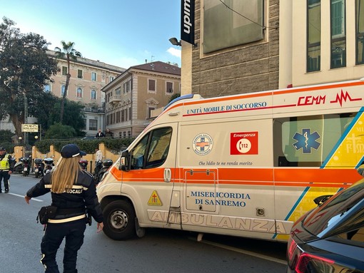 Sanremo: scontro auto-moto in via Roma di fronte all'Upim, donna trasportata in ospedale (Foto)