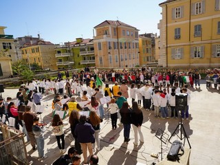 In occasione dell'anniversario dell'Unità Nazionale, della Costituzione, dell'Inno e della Bandiera, ieri mattina nella sede centrale dell'Istituto Comprensivo Sanremo Centro Levante, gli alunni delle classi quinte della scuola primaria 'A. Volta' sono stati protagonisti attivi della celebrazione. Dopo aver accolto con un caloroso applauso l'ingresso del Tricolore italiano, tutti insieme hanno intonato l'Inno di Mameli, accompagnati dall'Orchestra degli alunni dell'indirizzo musicale della scuola secondaria di primo grado 'Italo Calvino', mentre venivano recitate poesie legate al tema della giornata.