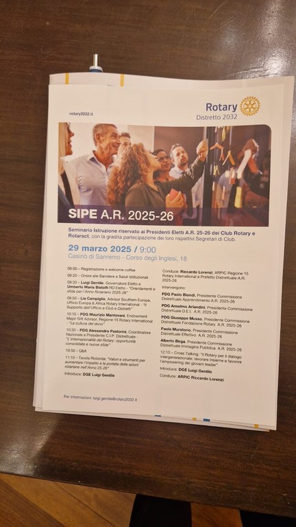 "Ieri, negli splendidi saloni del Casinò di Sanremo, nato nel 1905 proprio come il Rotary International, si è tenuto il 'SIPE: seminario istruzione presidenti eletti'.