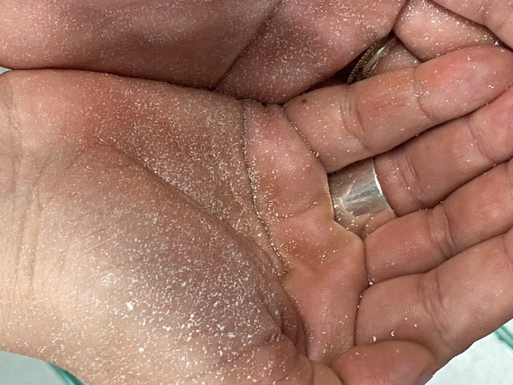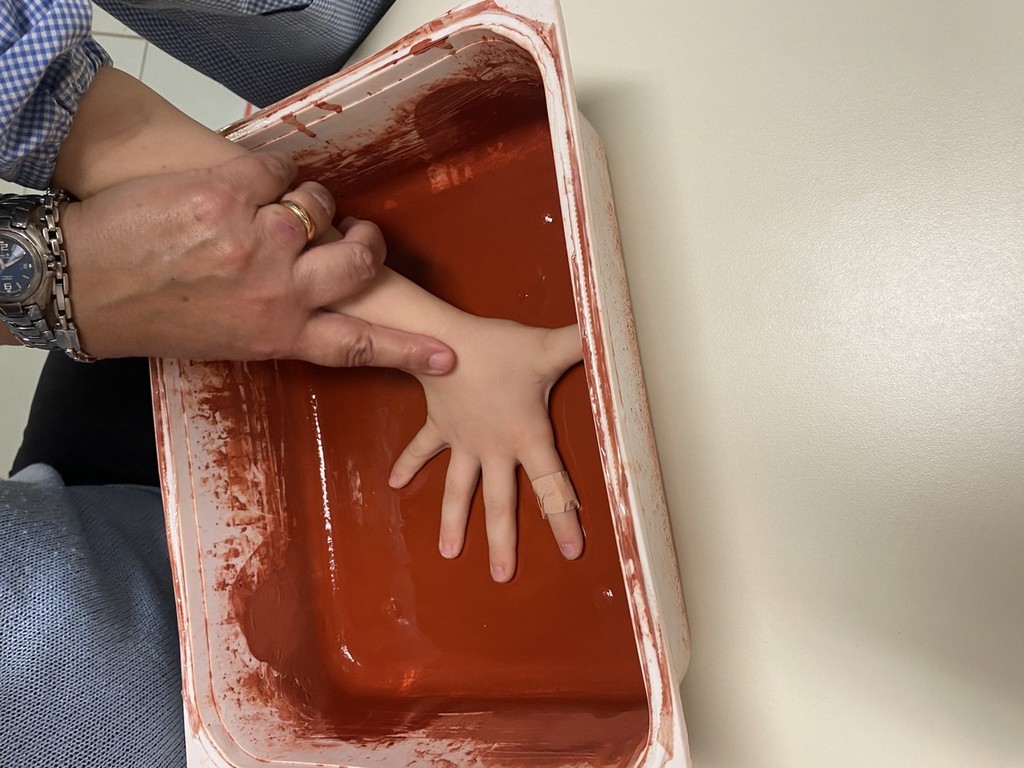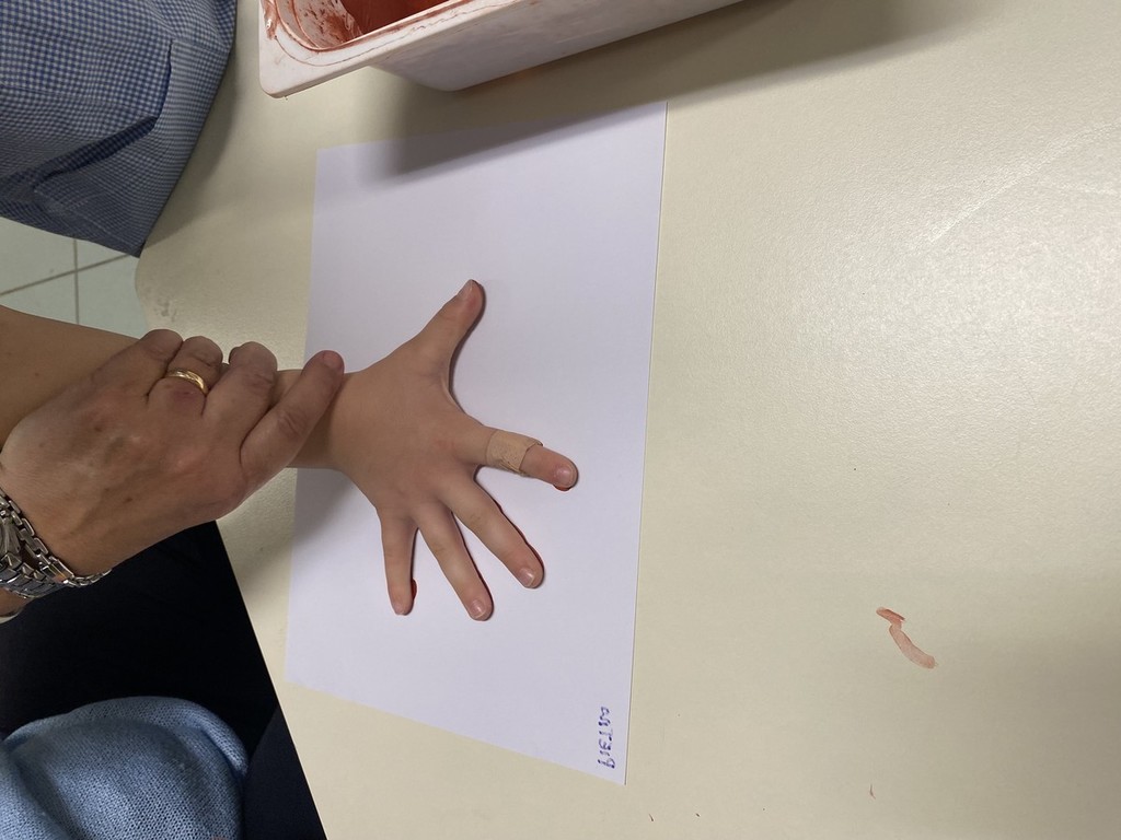 I bambini hanno anche scoperto come, strofinando le pietre, si possa ottenere una polvere per creare colori: con l’ocra hanno lasciato l’impronta della propria mano, proprio come gli antichi abitanti delle grotte.