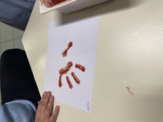I bambini hanno anche scoperto come, strofinando le pietre, si possa ottenere una polvere per creare colori: con l’ocra hanno lasciato l’impronta della propria mano, proprio come gli antichi abitanti delle grotte.