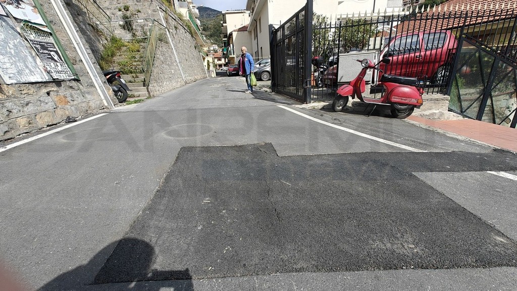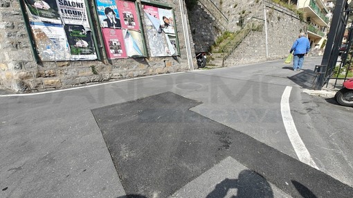 Sanremo: pericoloso avvallamento in via Margotti, dopo i lavori di alcuni giorni si è formata una profonda buca (Foto)