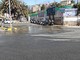 L’acqua ha cominciato a fuoriuscire da sotto l’asfalto, creando un piccolo fiume lungo la carreggiata