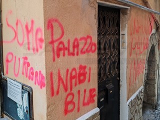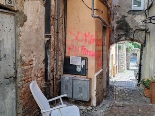 Sanremo: 'Palazzo inagibile', scritte con la vernice spray sui muri della Pigna. Residenti chiedono controlli (Foto)