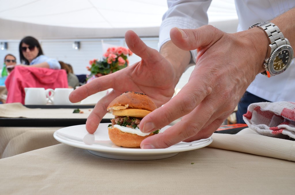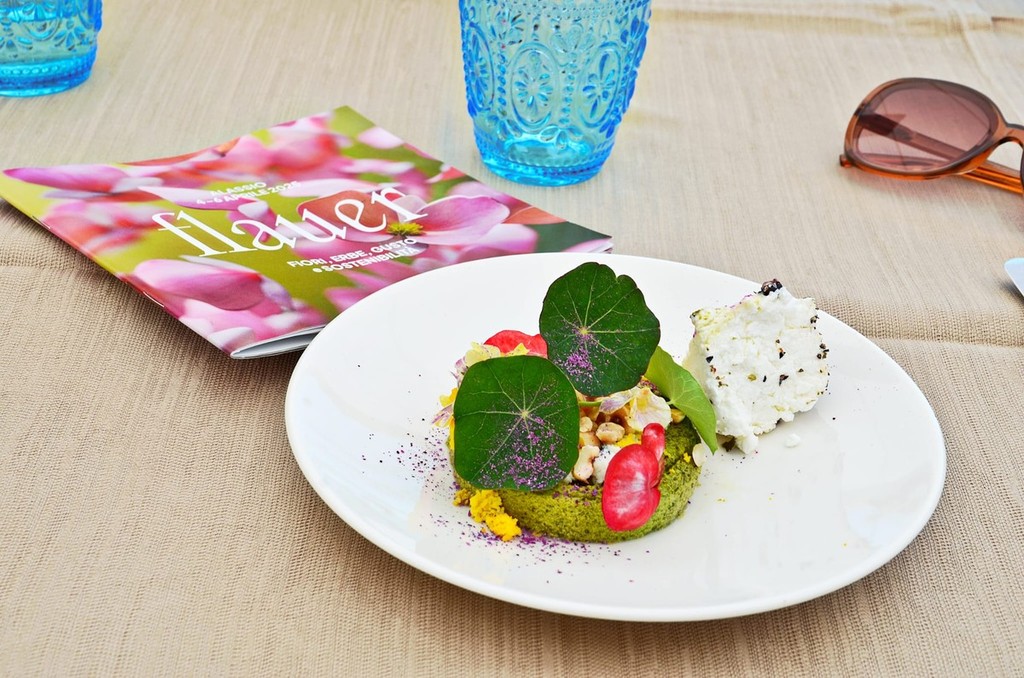 Si possono raccontare luoghi, natura e persone anche solo preparando piatti che raccontino veramente le loro storie. Questa è stata un’occasione per assaggiare due piatti pieni di vita che parlano di Sicilia sudorientale, di Lago Maggiore e di Liguria. Entrambi gli chef stellati hanno infatti portato sulle tavole della terrazza con vista sulla spiaggia alassina due loro straordinarie creazioni, interpretazioni personali dell’utilizzo di erbe e fiori di Ravera Bio di Albenga.
